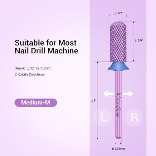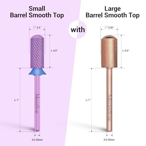 • MelodySusie Safety Nail Drill Bits, 3/32'' Smooth Round Top Small Barrel Carbide Bits for Acrylic Or Hard Gel, Medium Purple