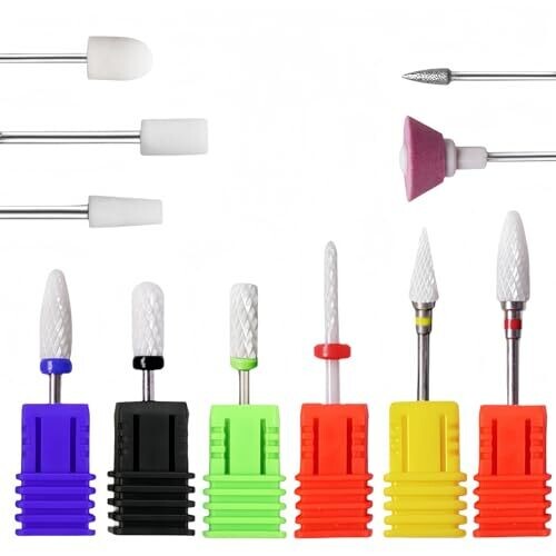 • Professional 11 pcs Ceramic Nail Drill Bits Set for Acrylic Gel Nails, Cuticle Care, Filing & Polishing, Fits Most Efile Machines