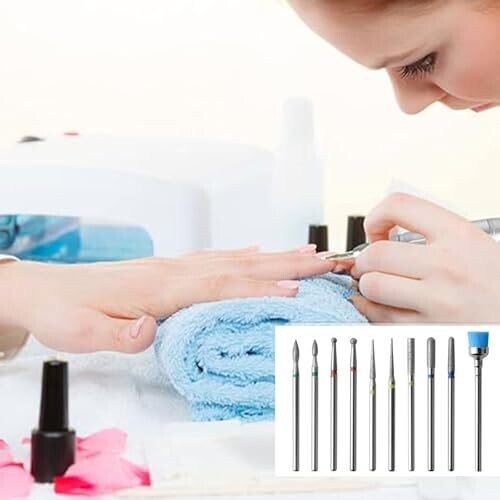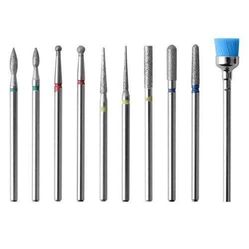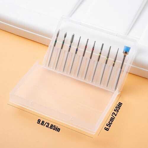 This 10-piece nail drill bits set covers everything from cuticle care to acrylic removal. Crafted from premium diamond for sharp, durable performance, they resist corrosion and work smoothly in both professional salons and home use with most 3/32