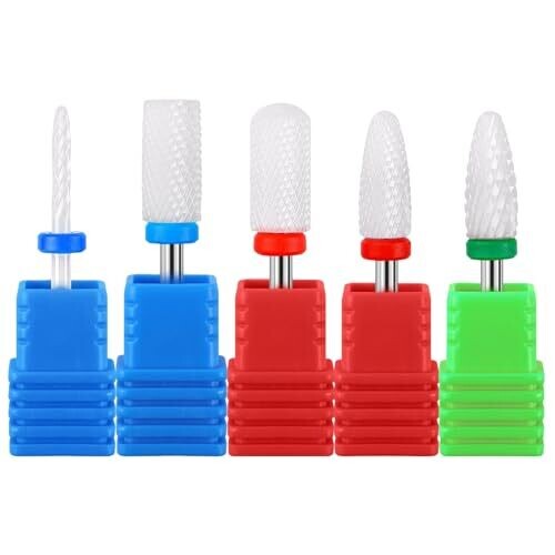 Ribhnhxhi Ceramic Nail Drill Bits Set 5pcs for Acrylic Filing Gel Polishing