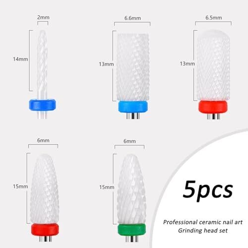 • Ribhnhxhi Ceramic Nail Drill Bits Set 5pcs for Acrylic Filing Gel Polishing