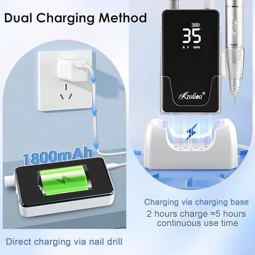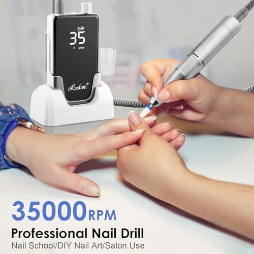 Kredioo Nail Drill Professional 35,000rpm with Charging Base Stand 2-In-1 Portable & On-Desk Electric File