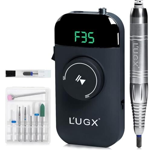 L'ugx Professional Nail Drill Rechargeable Waterproof Electric Nail Efile 35000rpm, Portable Nail Drill Machine for Gel Nails, Manicure and Pedicure E File Kit for Home & Salon Use