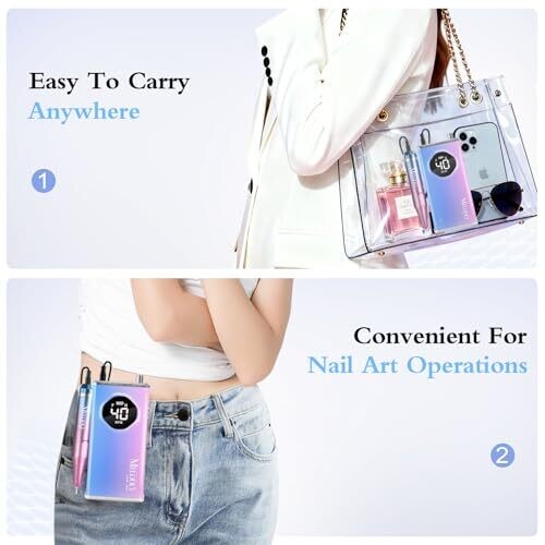 • Lightweight, portable design with a belt clip for on-the-go manicures and nail care.