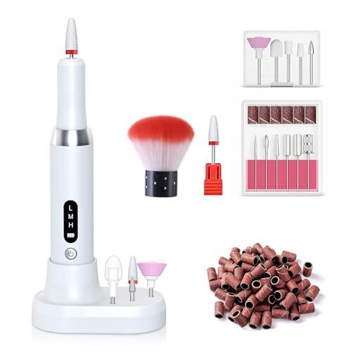 • Muyxgyfe Electric Nail Drill Machine 11 In 1 Kit, Portable Cordless Nail File Efile Set, White