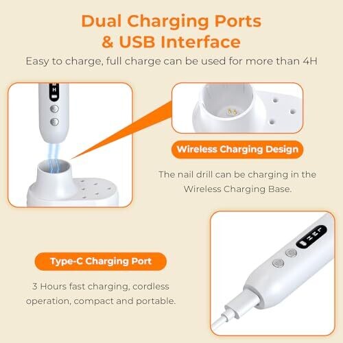 Cordless Nail Drill: 45000 Rpm Rechargeable Nail File Kit for Acrylics and Gels
