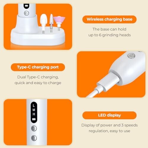 All-in-one cordless nail drill kit designed for acrylic, gel, and natural nails, delivering professional results at home or in-studio. Portable and lightweight with two-button control, includes 11 drill bits and accessories for filing, smoothing, and maintenance.