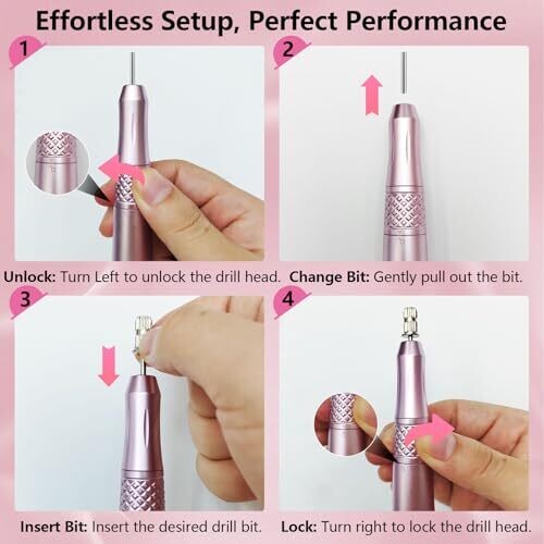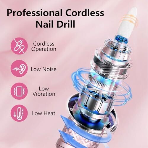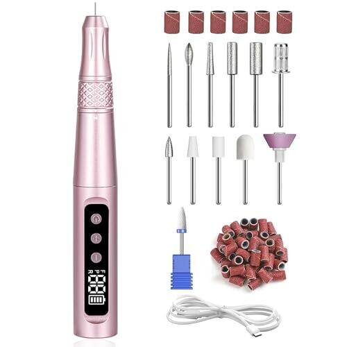 Oolong Nail Drill 35000Rpm, Rechargeable Cordless Nail File Kit with Twist Lock (Pink)