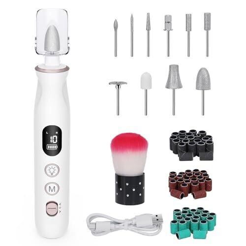 • Pelcas Electric Nail File, 10 Speeds Cordless Nail Drill with LED, Manicure Kit