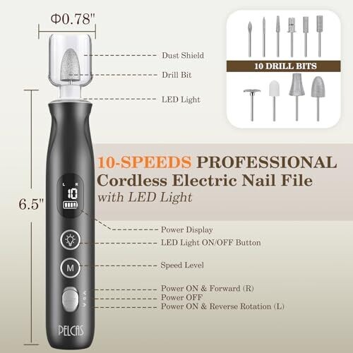 Pelcas Nail Grinder, 10 Speeds Drill with Led Light, Manicure Kit, Black