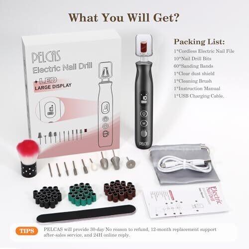 - Comes with a comprehensive kit including multiple drill bits and sanding bands for nails, thick toenails, gel polish removal, and more.