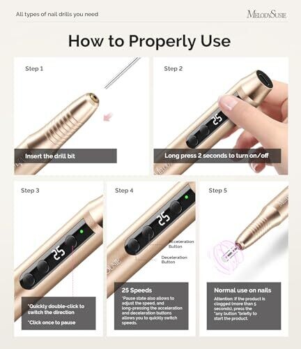 MelodySusie Pen-Shaped Cordless Nail Drill 25000Rpm with LED Display for Nails