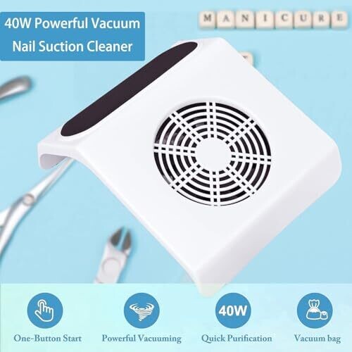 40W Portable Nail Dust Collector, Professional Manicure Vacuum with 2 Reusable Dust Bags (White)