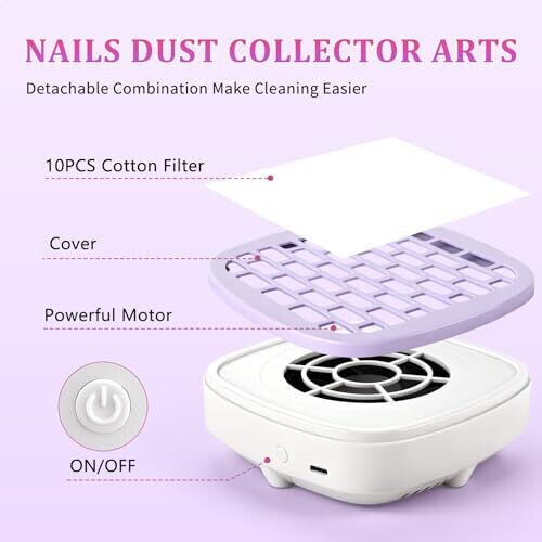 • Angnya Nail Dust Collector with 10pcs Filter Pads, Compact Vacuum Fan Collector for Home Use