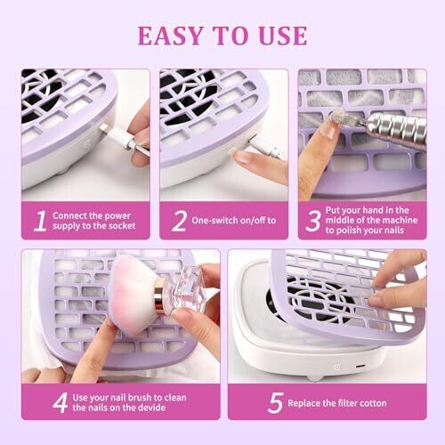 Angnya nail dust collector with 10 filter pads offers a compact, beginner friendly dust suction tool for manicures and pedicures at home. Includes a mini vacuum fan design ideal for acrylic nail polish cleanup and reducing airborne particles.