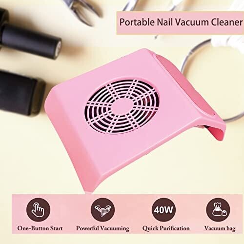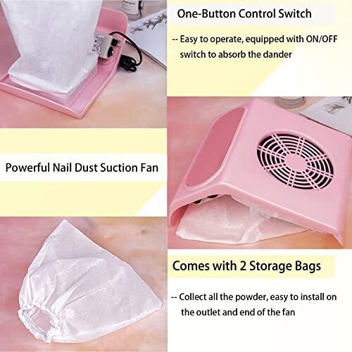 Aremod 40W Nail Fan Dust Collector Portable Vacuum for Salon with 2 Bags (Pink)