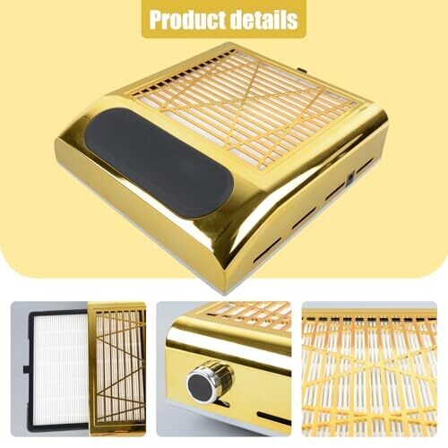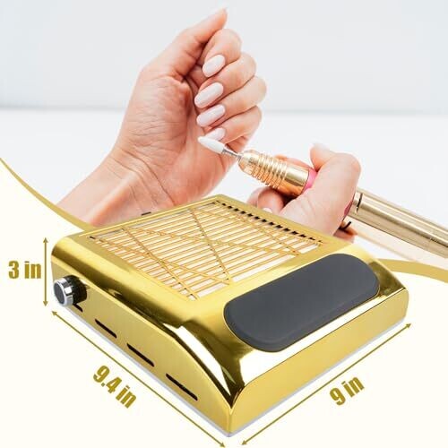 Bitusic Nail Dust Collector AU Plug, 80W Adjustable Power, Two-In-One Suction (Gold)