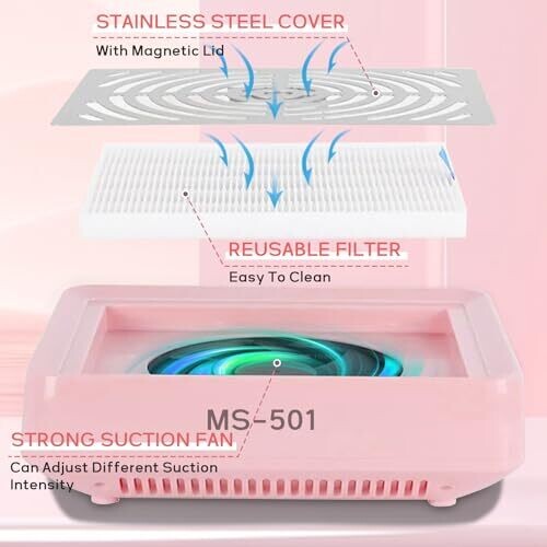• Powerful 40W suction quietly removes dust, manicure debris, and powders for a pristine studio.