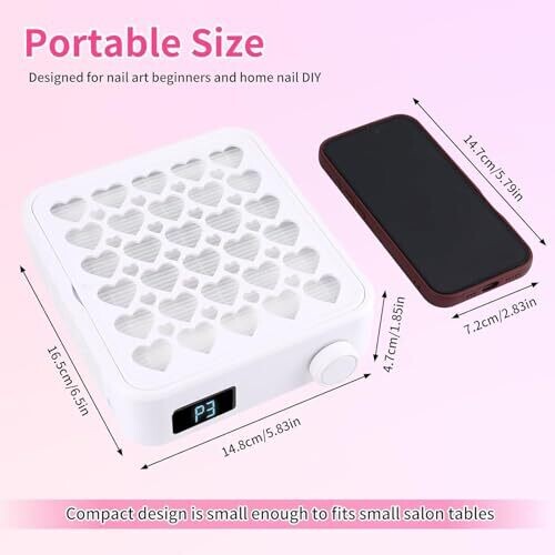 Compact portable design fits on small salon tables for home or studio use. Powerful 4200 rpm suction keeps nails and dust under control, with a reusable filter and disposable options. Low-noise operation and beginner-friendly setup for quick use.