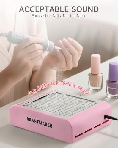 • Brantmaker Nail Dust Collector with Brush and 2 Filters, 60W Vacuum Fan (Pink)