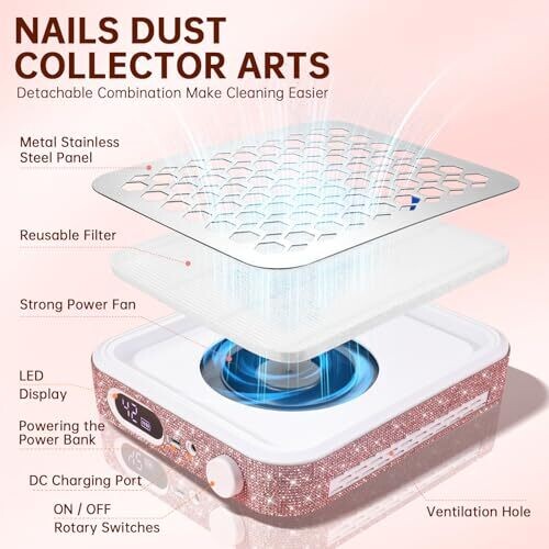 • Christine Shelly Nail Dust Collector Rechargeable Tech Vacuum Extractor for Acrylic Pink