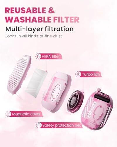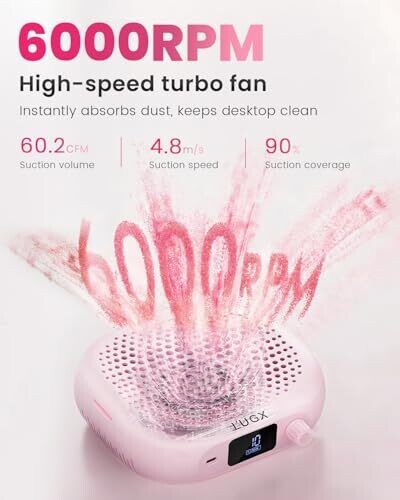 Cozyzen Nail Dust Collector, 4300Rpm Pro Vacuum with 45-Speed, 160Cfm (Pink)