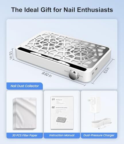 • Experience salon-grade cleanliness with powerful 1600PA suction that captures nail dust and debris quickly and efficiently.