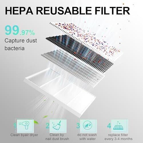 L'ugx Nail Dust Collector, Dust Suction for Nail Tech, 30 pcs Filter Papers