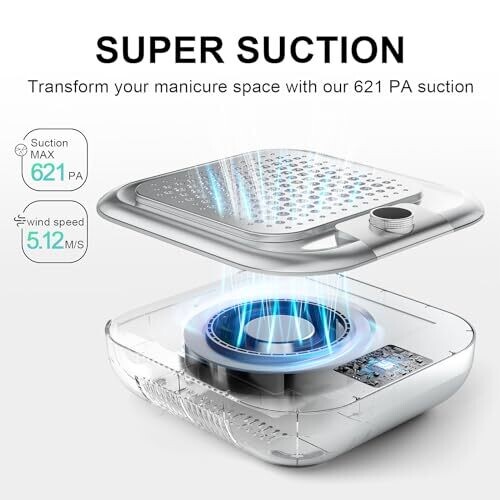 Efficient nail dust collector designed for acrylic nails. Includes two reusable filters, powerful low-noise operation, suitable for salon or home use, and helps keep your work area clean and dust-free.