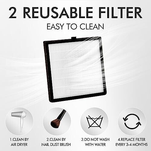 - Large work surface with a comfortable hand pillow and reusable filters for easy maintenance.
