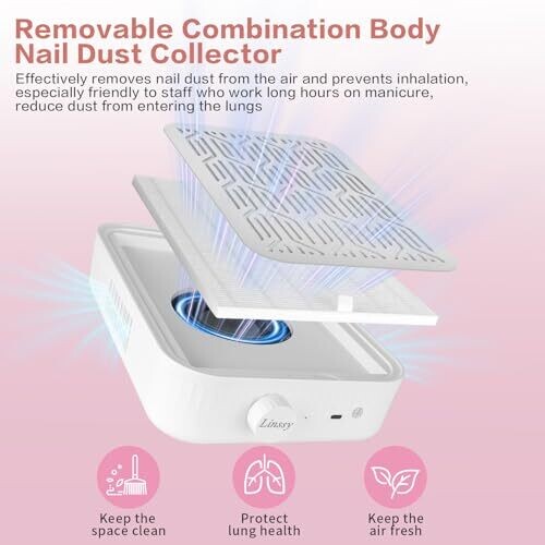 • Linssy Cordless Nail Dust Collector with Reusable HEPA Filter