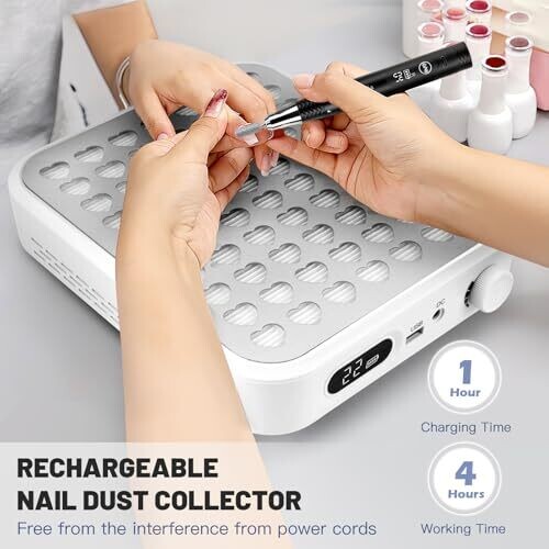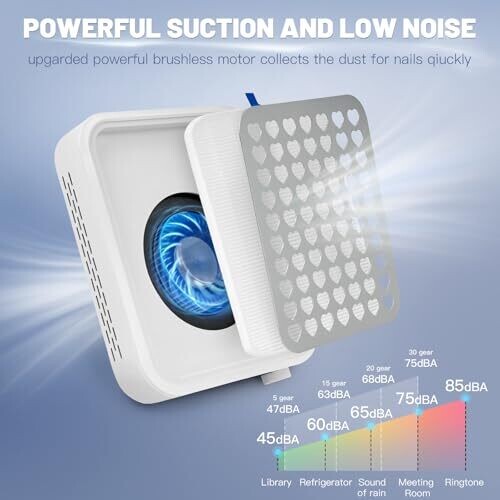 - Experience powerful suction and efficient dust removal that helps maintain a pristine work area during nail polish and filing sessions.