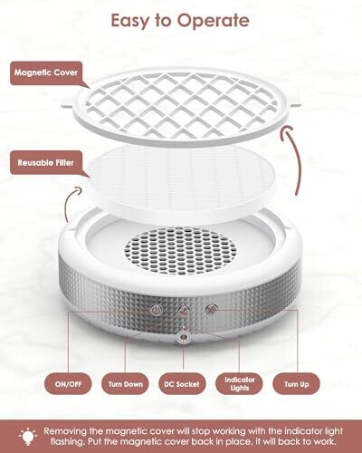 Professional-grade nail dust collector for home studios and busy salons. 4-speed suction, adjustable power, spacious opening, reusable filter, single-handed operation, and versatile for nails, model making, carving, filing, and buffing.