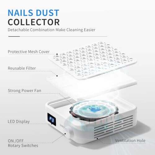 Musilan Nail Dust Collector, White Compact Dust Collector with Reusable Filter