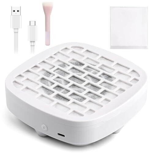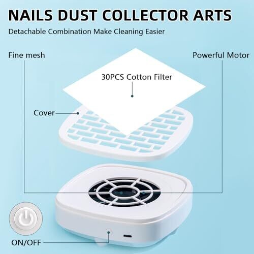 • Nail Dust Collector with 30pcs Filter Pads and Dust Brush for Home Use (White)