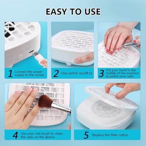 Nail Dust Collector with Reusable Filter, Dust Suction Machine for Manicure and Pedicure