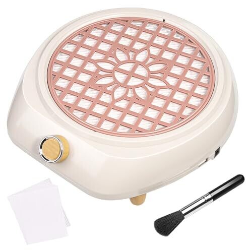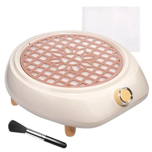 Nail Dust Collector with 30pcs Filter Pads and Dust Brush for Home Use (White)