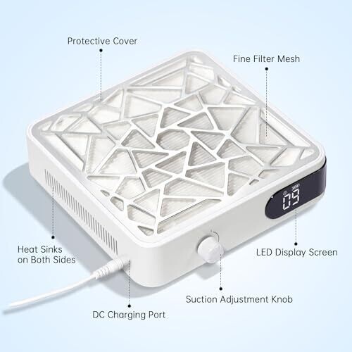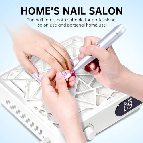 Efficient nail dust collector with a powerful vacuum and fan to extract dust during acrylic nails and polish application. Keeps your salon clean and safe, supporting clean air and a healthier workspace.