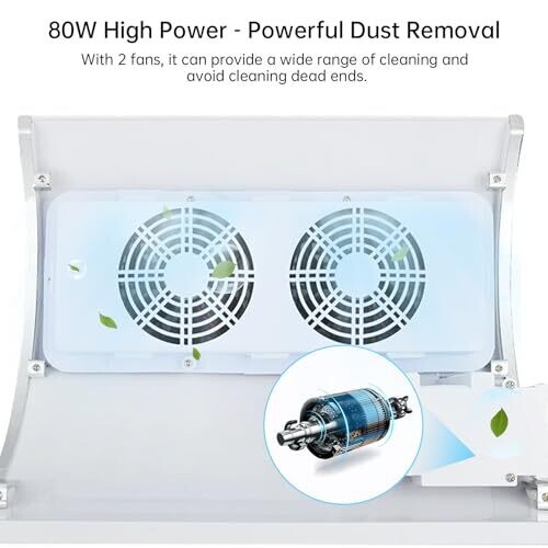 - 80W performance with dual fans for strong suction and efficient dust removal.