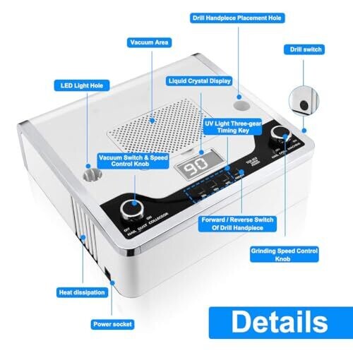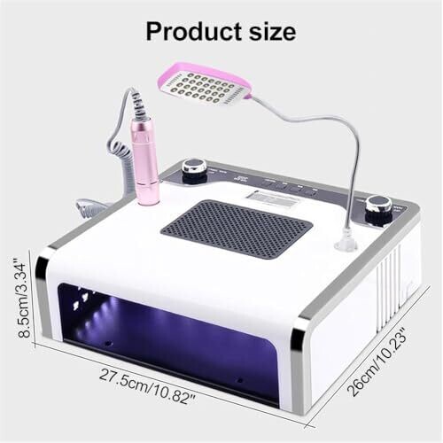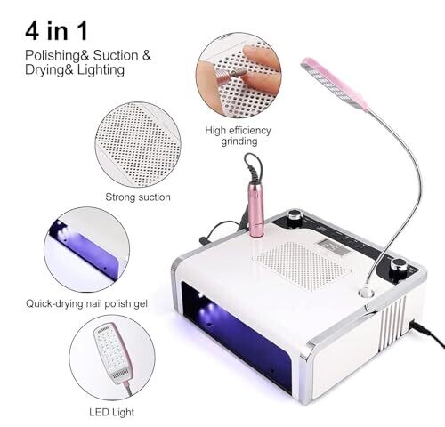 • 4-in-1 design combines nail dust collector, nail drill, LED lamp, and nail dryer for a streamlined workflow.