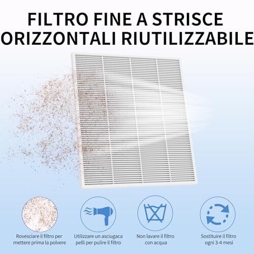 - Reusable filter with easy removal and cleaning, reducing maintenance and waste.