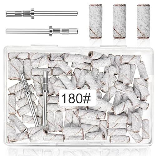 Achieve precise salon-quality nails with 180 grit mini sanding bands designed for detailed shaping and smooth finishes. Includes 100 bands and 2 silver mandrel bits in a portable case for easy travel and versatile use on gel, acrylic, and natural nails.