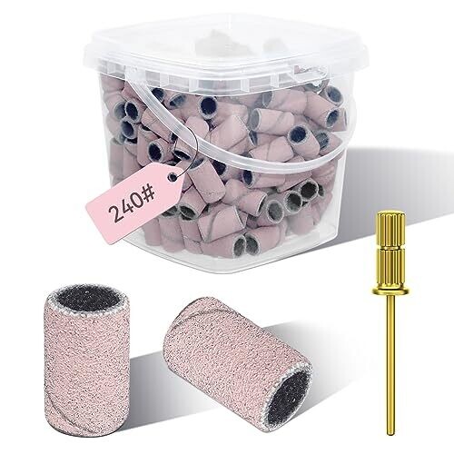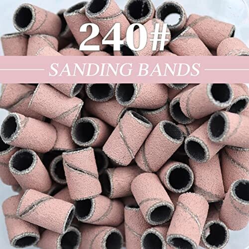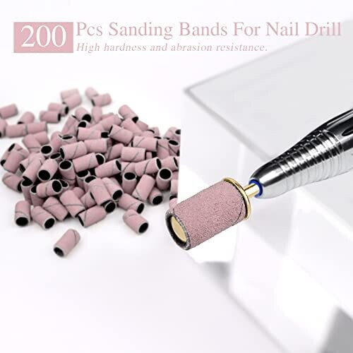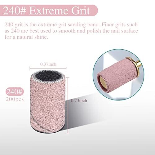 200 pcs Nail Drill Bits Sanding Bands 240# Fine Grit for Acrylic Nails Gel Manicures