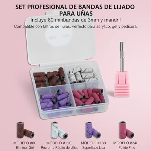 - Compact 3mm sanding bands allow precise, delicate work on curves and cuticles.