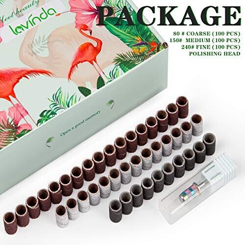 • Lavinda Sanding Bands Nail Drill Bits 300pcs Grits 80 150 240 Zebra Mandrel 3/32