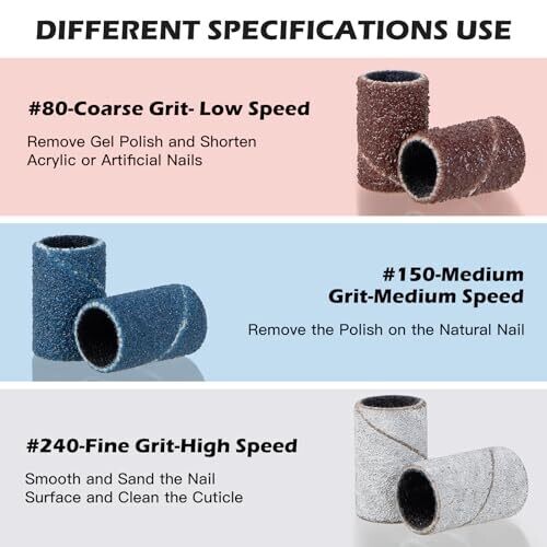 Sanding Bands for Nail Drill, 300pcs, 3 Colors 80 120 180 Grit, Includes Drill Bits for Acrylic Nails