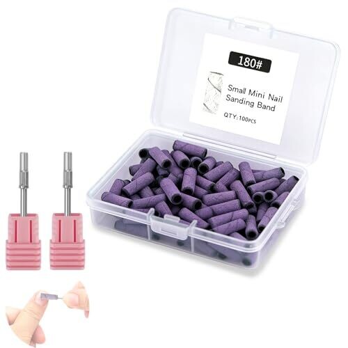 Abeillo 100pcs Small Sanding Bands for Nail Drill, 3.1mm Mandrel, Fine 180# Grit