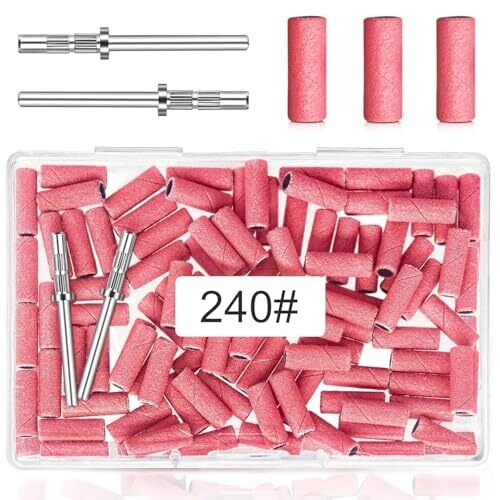 Povtor 240 Grit Sanding Bands for Nail Drill, 2 Mandrel Bits for Natural Nails